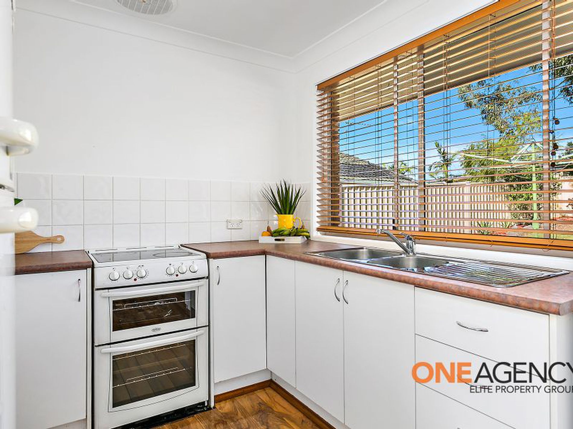 Open-plan and air conditioned, the lounge/dining zone is appointed with sleek timber floorboards and flaunts a fresh, modern feel. Tucked around the corner for effortless access, the neatly maintained kitchen welcomes a flood of natural light - and its ample cupboard storage is a must for family living.