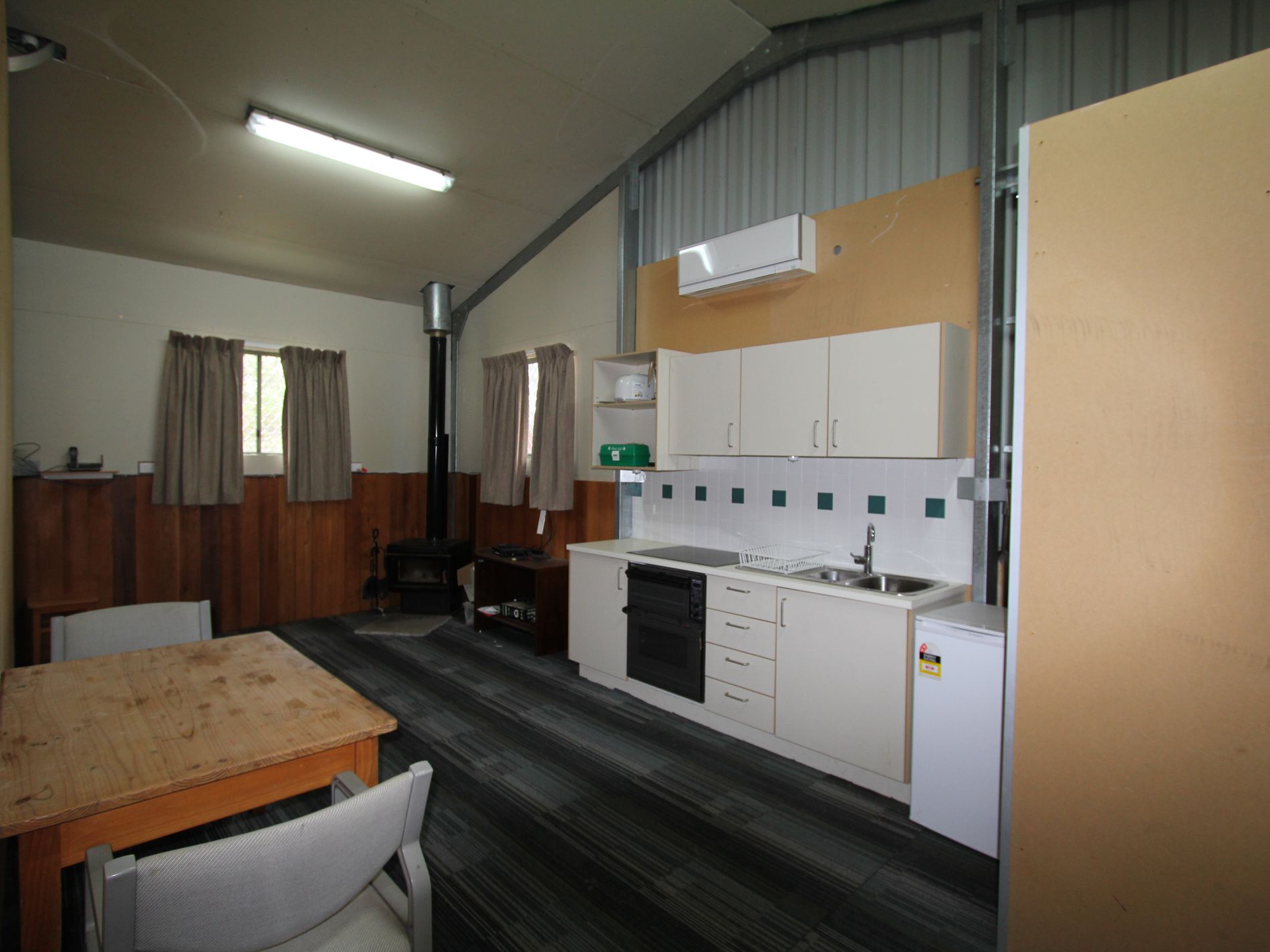 The shed has three phase power, a 20,000-litre water tank, internet and tv aerial, a pot belly stove and air-conditioning. There is a spring fed dam providing water security, an intermittent stream with scope for more water storage with excellent water catchment features.