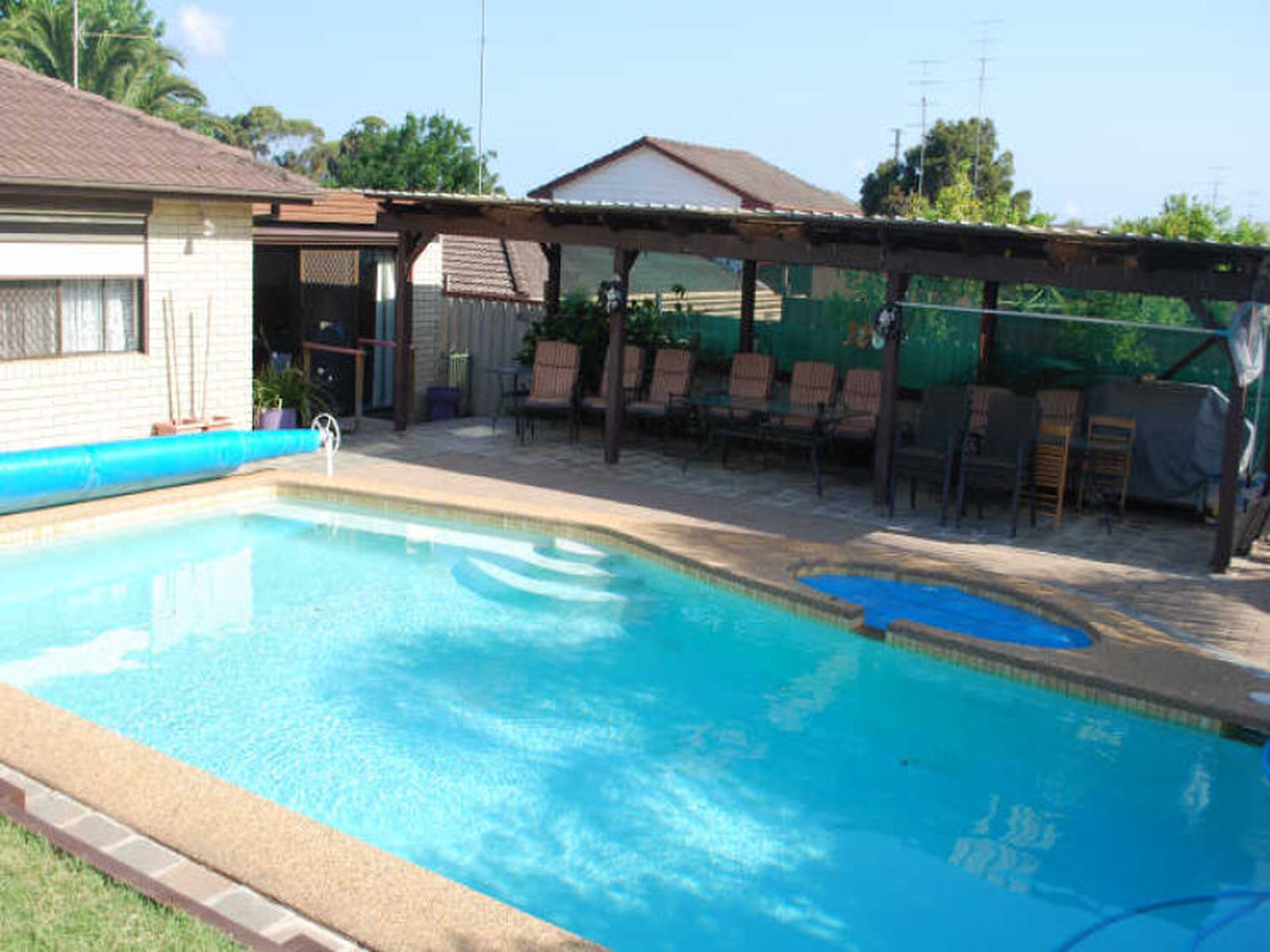Off the entertainment area you will find a large covered pergola area to enjoy while you take a dip in your in ground pool.