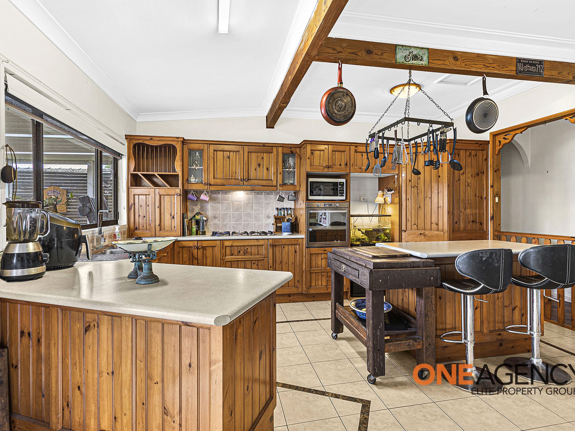 Needing nothing more than your personal touch, interiors are wonderfully welcoming complete with high ceilings, a fireplace nook and polished timber floors. The air-conditioned lounge is oversized and frames leafy garden views across the front verandah, while a separate open-plan kitchen/meals zone reveals a corner pantry, dishwasher, island and gas cooktop.