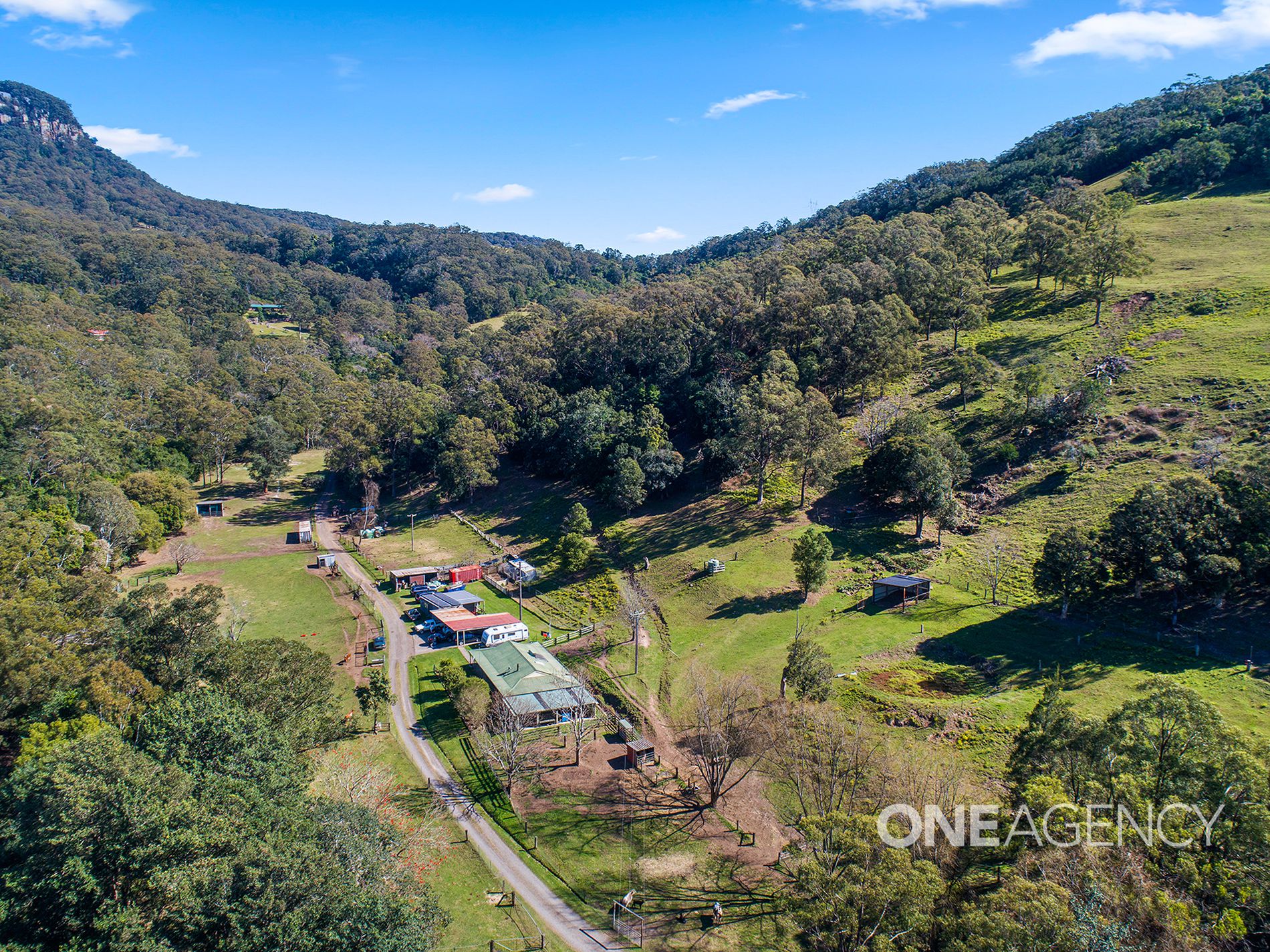 Nestled snugly in one of the districts most scenic valleys, this incredible offering provides 49 acres of pristine natural greenery and hobby farmland complete with cattle yards and a private dam, extensive shedding, town water and septic sewerage. A creek runs through the property, and gives a freshwater supply to livestock and the house.